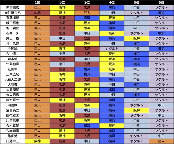 6位…DeNAめいめいの予想が当たると