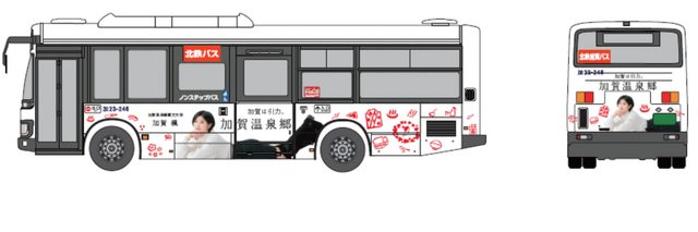 ・加賀温泉郷観光大使を務める加賀楓さんの写真を用いたラッピングを施します